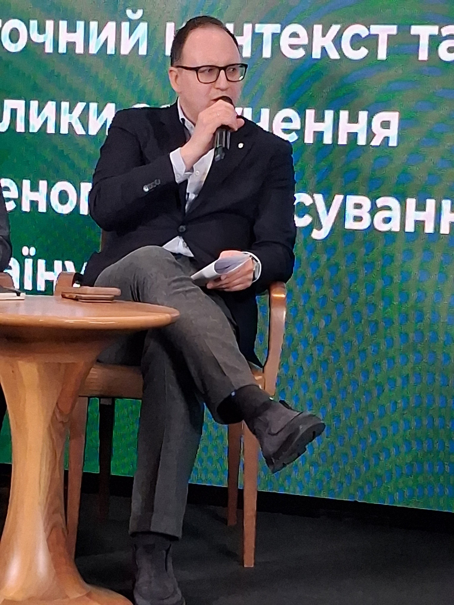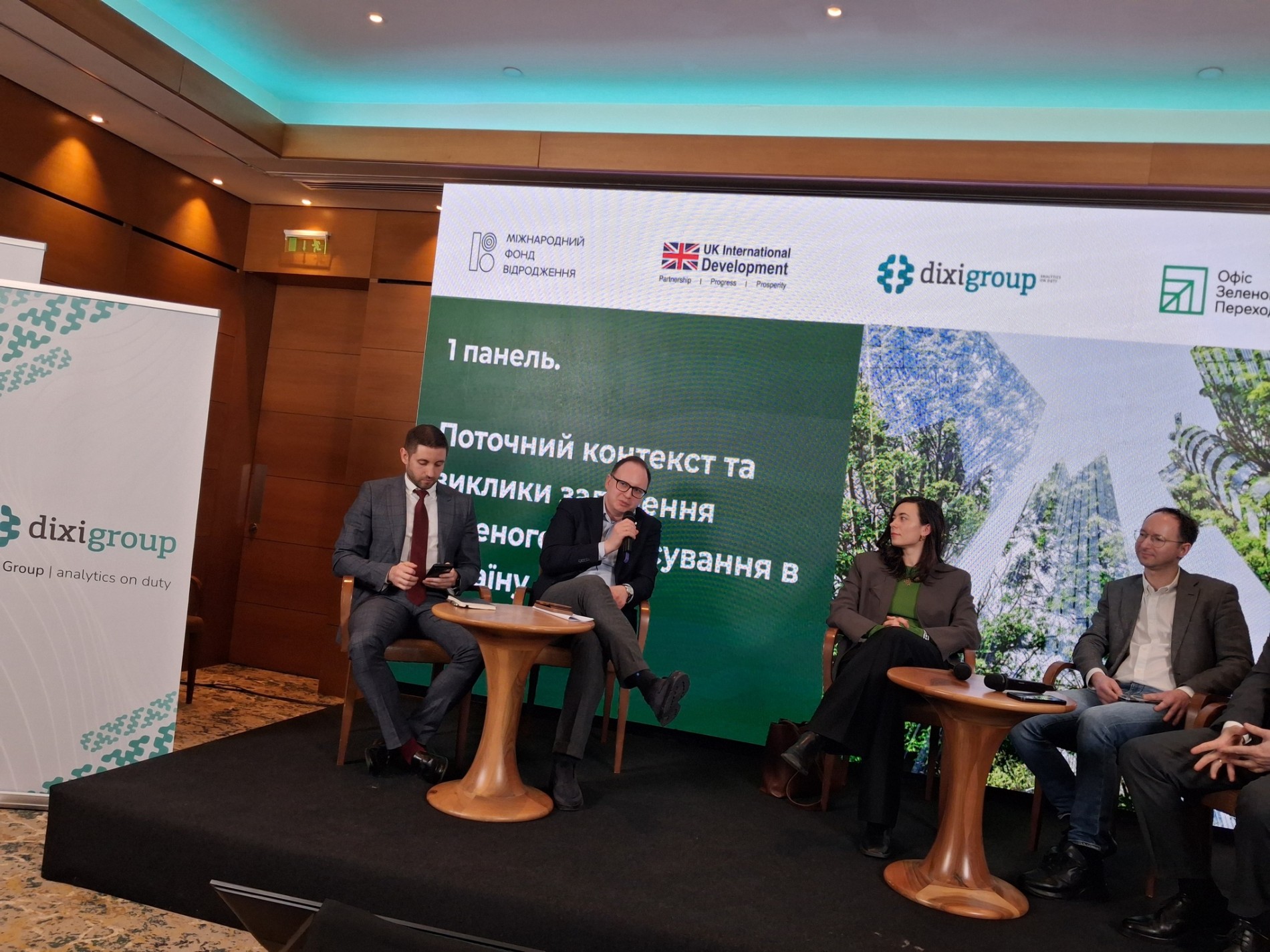 27 лютого 2026 року в гібридному форматі (офлайн м. Київ, отель Hyatt Regency Kyiv) відбувся міжнародний публічний захід “Зелене фінансування: від концептів до практичної імплементації”. Організація цього заходу стала можливою за фінансової підтримки Міжнародного фонду «Відродження» вмежахпроєкту«Дослідженнятаадвокаціяможливостейдля«зеленого»відновленняУкраїни», який реалізує офіс зеленого переходу - незалежний консультативно-дорадчий орган при Міністерстві економіки України та допомагає впроваджувати реформи в сфері зеленого переходу, енергетичної та кліматичноїполітикиУкраїни.ДіяльністьздійснюєтьсязафінансовоїпідтримкиАгенціїВеликоїБританіїз міжнародногорозвитку.